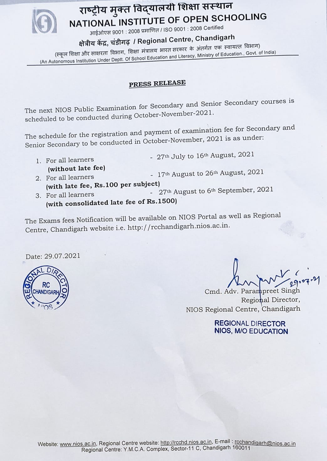 अक्टूबर/नवंबर 2024 में आयोजित होने वाली माध्यमिक और वरिष्ठ माध्यमिक पाठ्यक्रमों की सार्वजनिक परीक्षा की डेटशीट/ Datesheet of Public Examination of Secondary and Senior Secondary courses to be held in Oct/Nov 2024 - All India